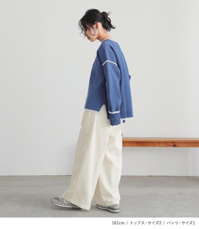 202501 2点セット プレゼント トップス ニット ニットトップス 長袖 レディース 配色 配色ニット 袖デザイン ラフ カジュアル シンプル クルーネック Uネック 大人女子 大人可愛い お洒落可愛い 大人カジュアル ベーシック オフィスカジュアル ミディ丈 ドロップショルダー Aライン 無地 おうちで洗える 春 秋 冬 ナチュラル フェミニン 可愛い系 上品 きれいめ S M L LL 3L 女子会 オフィス 通勤 通学 お買い物 お出掛け 旅行 おしゃれ お洒落 トレンド 流行 osharewalker オシャレウォーカー おしゃれうぉーかー ワイドパンツ ボトムス スラックス ストレート タックパンツ ロング丈 ウエストゴム センタープレス パンツ ロングパンツ ストレートパンツ フルレングス 10分丈 ポケット 裏地付き スタイルアップ 脚長 楽ちん 楽 モード キレカジ オフィス・ビジネス かっこいい XLサイズ ぽっちゃり 体型カバー 大きいサイズ プラスサイズ リゾート レジャー 福袋 コーディネートセット コーデセット 中身が見える福袋 上下セット ギフトセット[ID]11cn0qn[配色ラインニット×タックワイドスラックスコーデ2点SET]