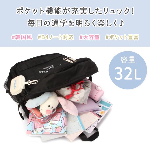 商品レビューで+5%|FILA フィラ リュック 32L 大容量 軽量 撥水 女子 中学生 高校生 通学 部活 大きめ かわいい 韓国風 パステルカラー スクールバッグ デイパック バックパック A4 B4 ルミノ 7891