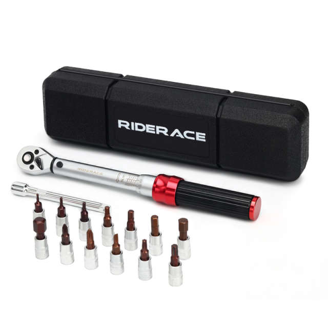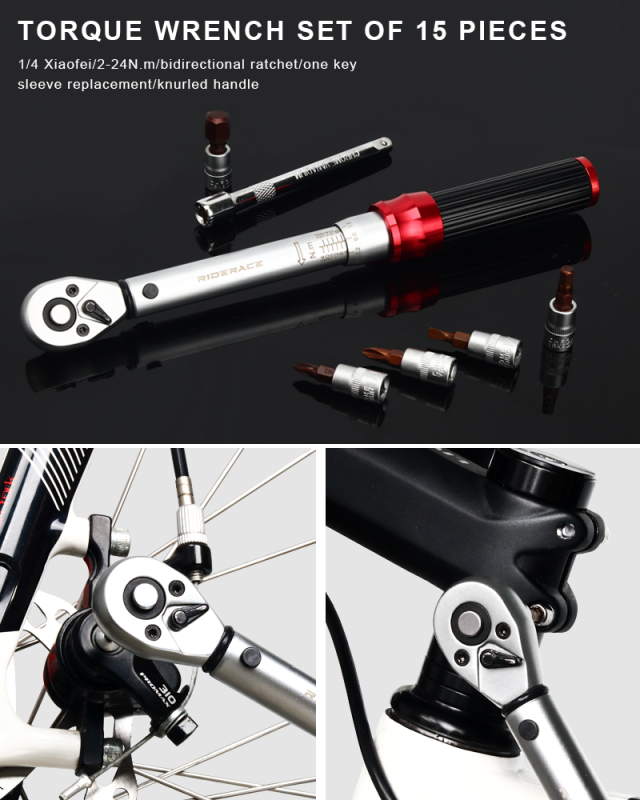 ライダーエース自転車トルクレンチセット15個入り1/4インチ2〜24nmデュアルディレクションバイクアレンキーツールソケットスパナプロオートバイ修理キット
