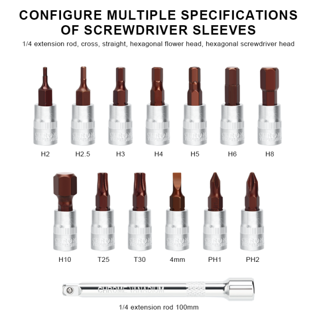 仕様:名前: トルクレンチツール材料: ニッケル-クロム合金鋼正方形のヘッドサイズ: 1/4"詳細な設定は次のとおりです。2-24nmトルクレンチ (1個)六角形のソケットヘッド,2mm,2.5mm,3mm,4mm,5mm,6mm,8mm,10mm(8個)六角形の花の頭: t25,t30 (2個)クロスph1、ph2 (2個)ワンワードヘッド: 4mm