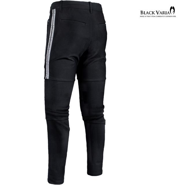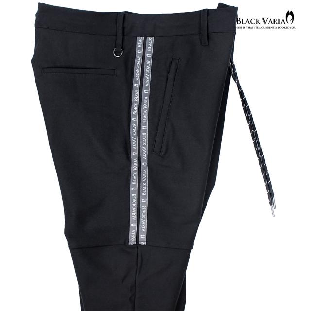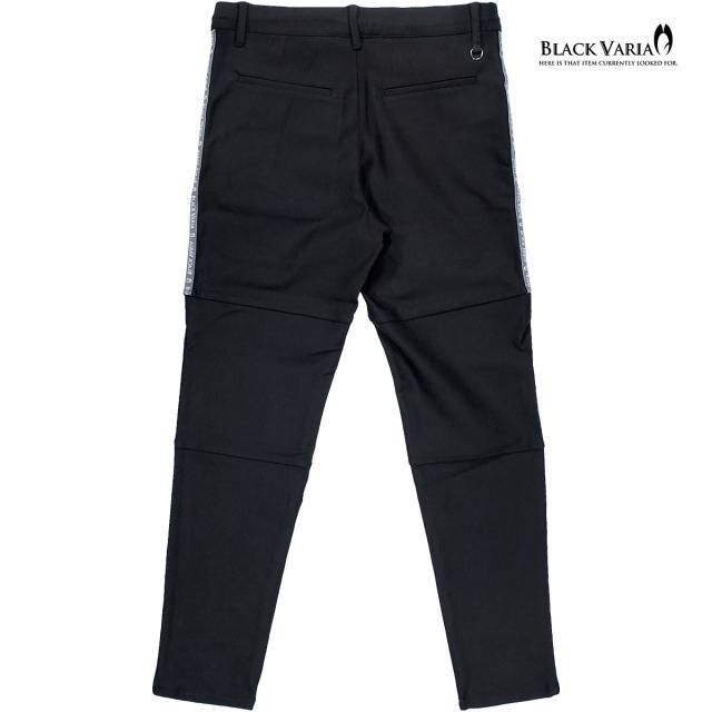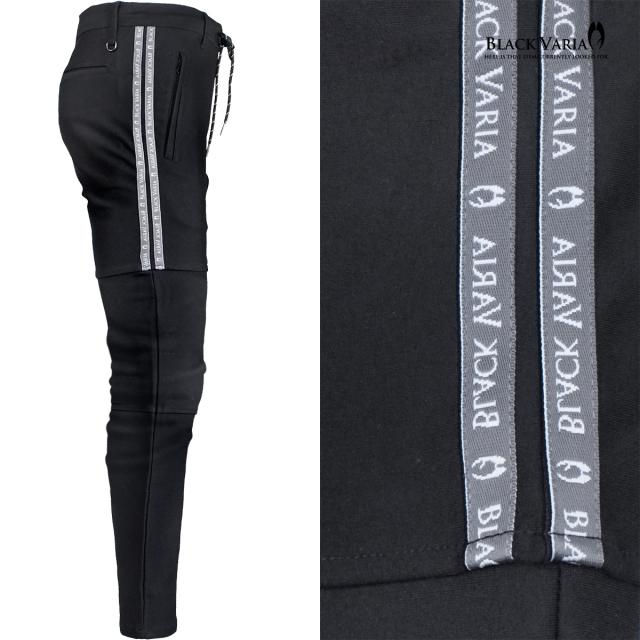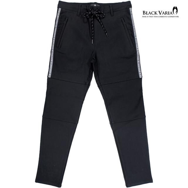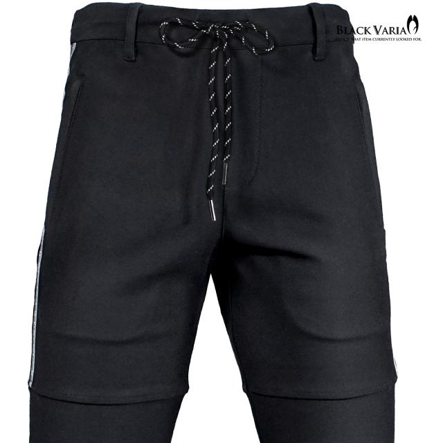 サイドライン ジャージ 細身 スリム メンズ ボトムス ストレッチ スポーツ スウェットパンツ(無地ブラック黒) 943032