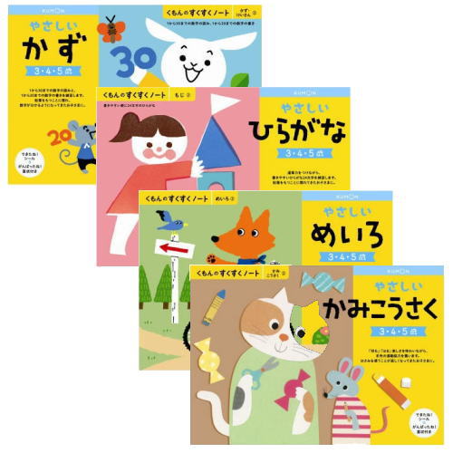 (おまかせ便で送料無料)4冊セット くもん やさしいかみこうさく やさしいめいろ やさしいかず やさしいひらがな 3〜5歳 すくすくノートシリーズ 公文出版