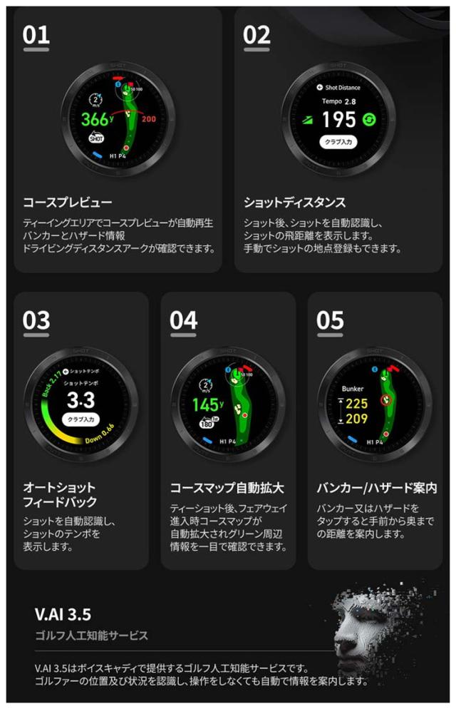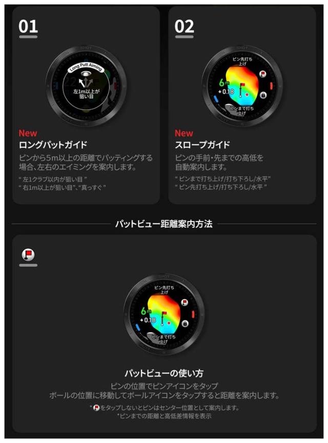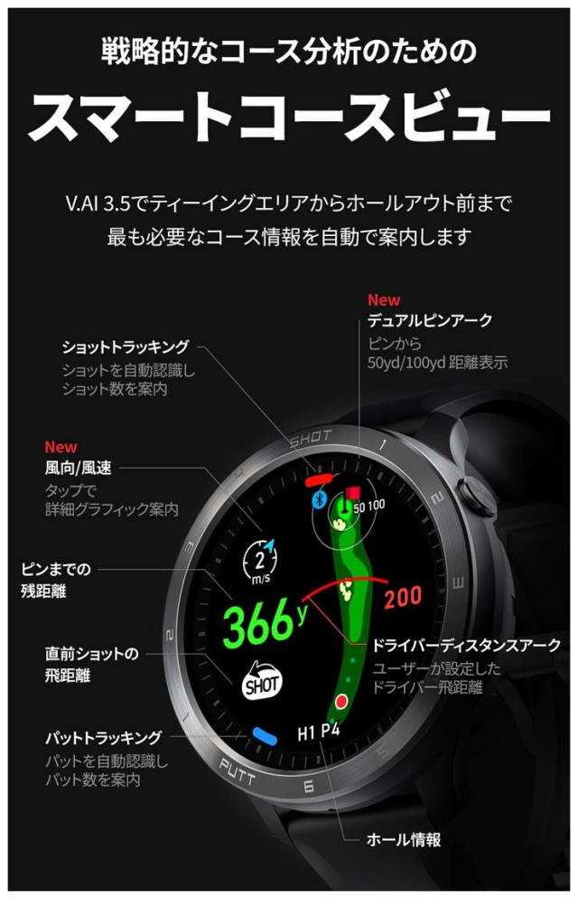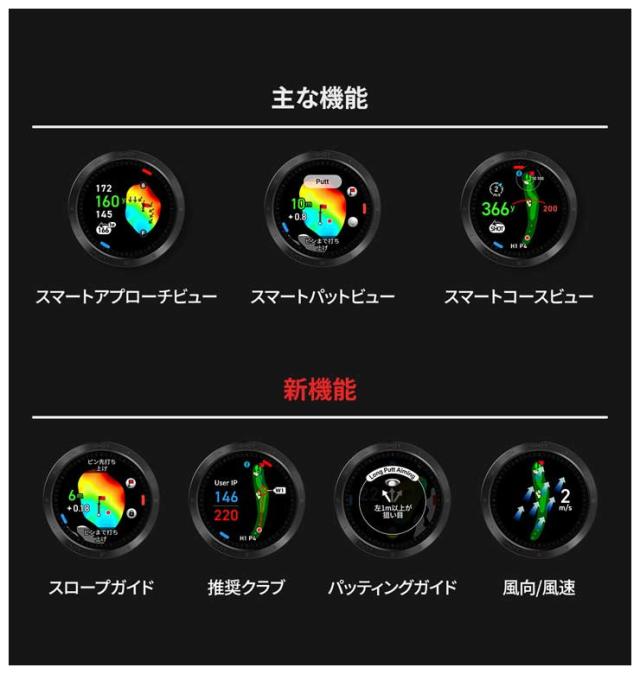 | プロフィール | T-Ultraまで提供している機能のスマートコースビュー/グリーンビュー/パットビュー、ショットテンポ提供・練習、過去のラウンド記録を確認できるフラッシュバック機能などはそのままにして、さらに以下の多数の新機能が追加されました。 |