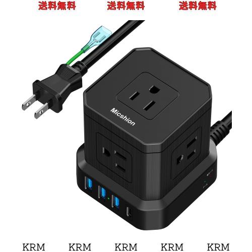 Micshion キューブ型電源タップ 3M Type-C付 コンセントusb付き 延長コード 5個AC口 4個USBポート 雷ガード 電源タップ usb付き タコ足配