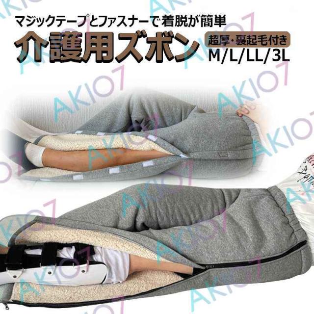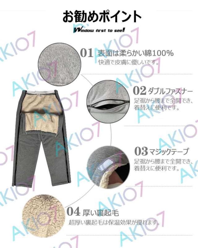 【裏起毛】介護用ズボン 介護用パジャマ マジックテープ ファスナー付き 介護ロングパンツ 通年用 秋冬 綿100% 全開 フルオープン 寝たきり 術後 入院 骨折時サポート