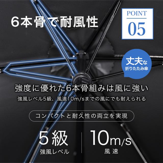 6本骨で耐久性抜群◎高耐風&軽量化を実現し、風が強い日でも安心して使用いただける日傘です。