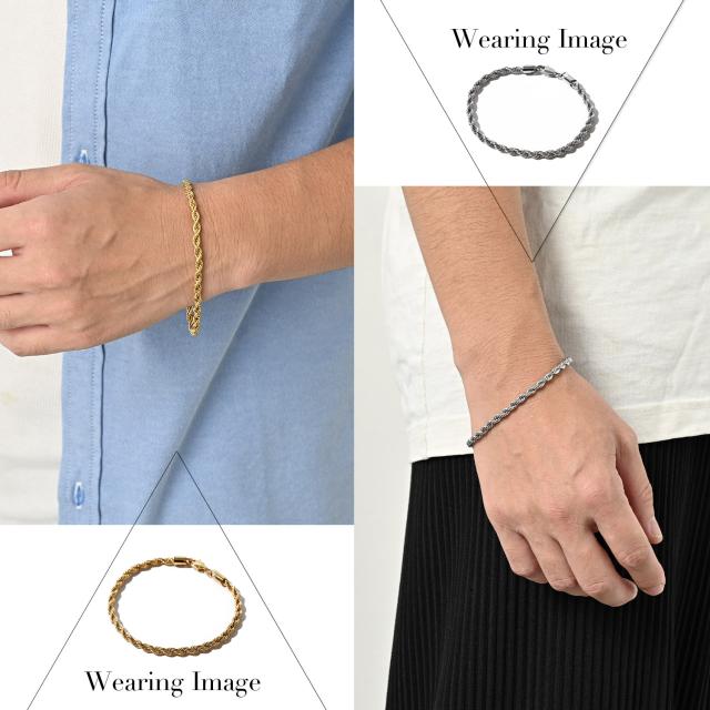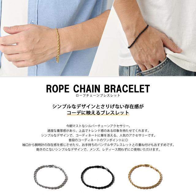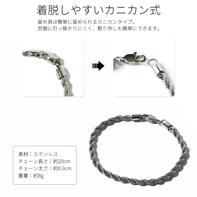 ブレスレット メンズ チェーン シルバー ステンレス レディース 細め 細 つけっぱなし ペア おそろい ロープ スクリュー 重ね付け おしゃれ シンプル