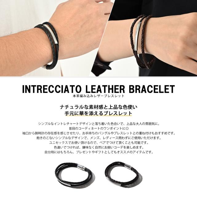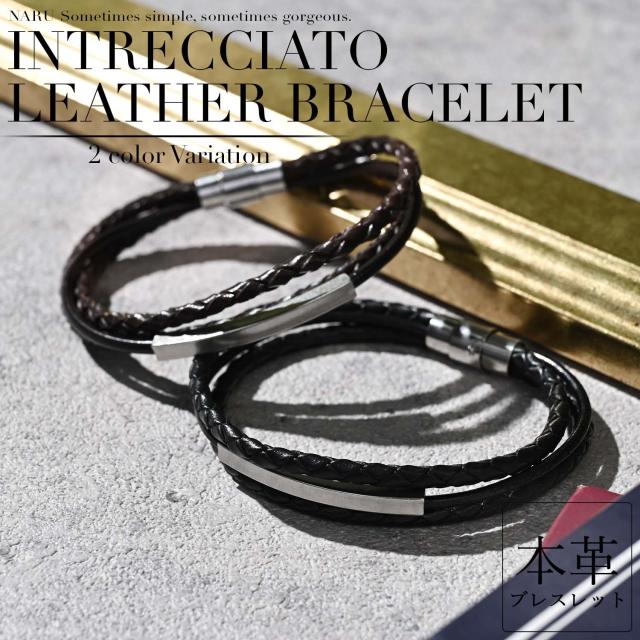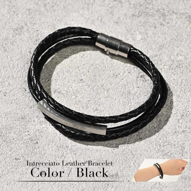 ブレスレット メンズ レザー 革 レディース つけっぱなし ペア おそろい カップル 本革 牛革 編み込み 編込み 3連 三連 重ね付け おしゃれ かわいい シンプル