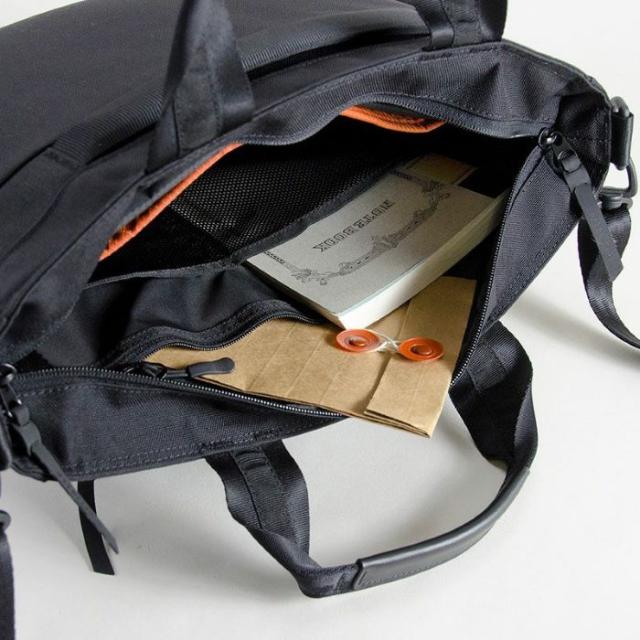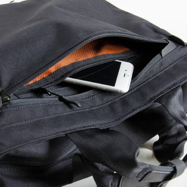 内装 メインルーム: ファスナーポケット、オープンポケット(メッシュ)x2 前面ルーム: ファスナーポケット