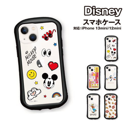 ディズニーキャラクター iPhone13mini/12mini対応ハイブリッドクリアケース DN-890 /ミッキーマウス ミニーマウス ドナルドダック グーフィー チップ&デール