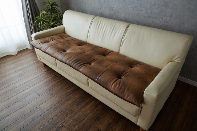 おしゃれなステッチのシートクッション キャメル ロング 3人掛用 50×150 合成皮革