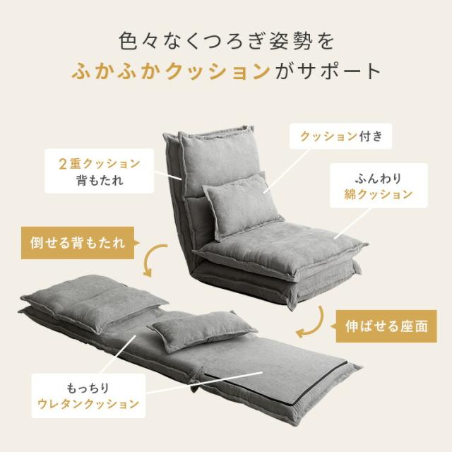 座椅子 ハイバック おしゃれ イス 座いす リクライニングチェア フロアチェア 伸ばせる リクライニング 椅子 ごろ寝 クッション 折りたたみ チェアー チェア 3WAY おしゃれ コンパクト