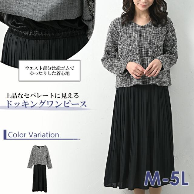 上品なセパレートに見えるドッキングワンピース。 XXXXL 2XL 3XL 4XL ロング丈ワンピース ゆったりサイズ ぽっちゃり女子 プラスサイズ 大きいサイズ レディース 長袖ワンピース ロング丈ワンピース ロングワンピース ドッキングワンピース 重ね着風ワンピース フェイクレイヤード ツイード プリーツスカート風 ロング丈 ミモレ丈 長袖 ロングスリーブ Vネック 切り替えデザイン 上下切替 春服 秋服 春物 秋物 春ワンピース 秋ワンピース 春ワンピ 秋ワンピ ゆったり ラクラク 体型カバー マシンウォッシャブル 洗濯機洗い可能 家庭洗濯 大人 カジュアル フェミニン セミフォーマル sfm セレモニー オフィス 上品 エレガント 学校行事 入園式 卒園式 入学式 卒業式 きれいめ かわいい かっこいい 着こなし おしゃれ 定番 春コーデ 秋コーデ ファッション 大きめ 女性 婦人用 ミセス 30代 40代 50代 2025 春新作 春 秋 黒 M LL 3L 4L 5L 9号 13号 15号 17号 19号 cp-sa-op0488