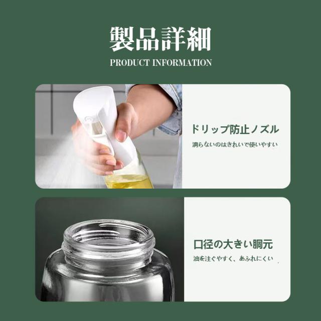 オイルスプレー オリーブオイル スプレー 耐熱ガラス 霧吹き 料理用 油 スプレー 調理用オイルミスター 噴霧器ボトル グレープシードオイル イルスプレーポット オイル用 oil sprayer 酢適用 油いれ容器 透明 漏れ防止 キッチン用品 オイルポット