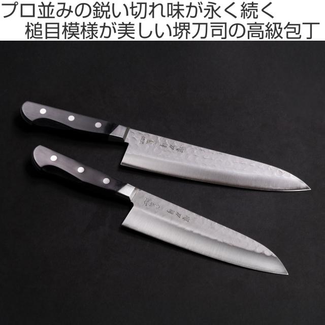 本格的な佇まいの包丁は、料理にこだわる方へのプレゼントにもおすすめです。「堺刀司」の文字が箔押しされた、高級感のある箱入りです。