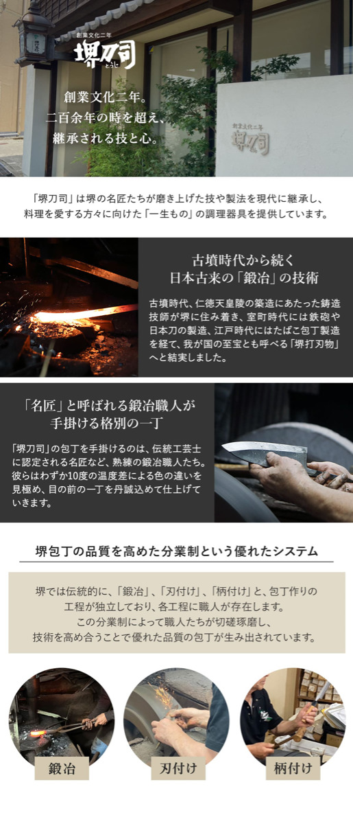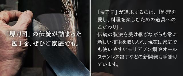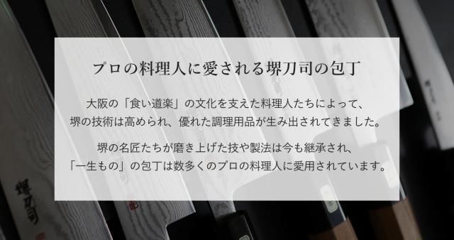 三層構造の芯になっている青鋼は、堺の刃物に使われる鋼の中でも最高級の材質です。切れ味と耐摩耗性に優れているため、本格志向の方やプロの料理人の方にもおすすめの一品です。