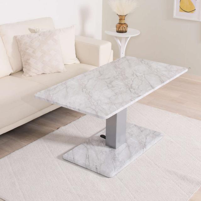 1本脚で空間を広く!無段階調整できる大理石柄の昇降テーブル