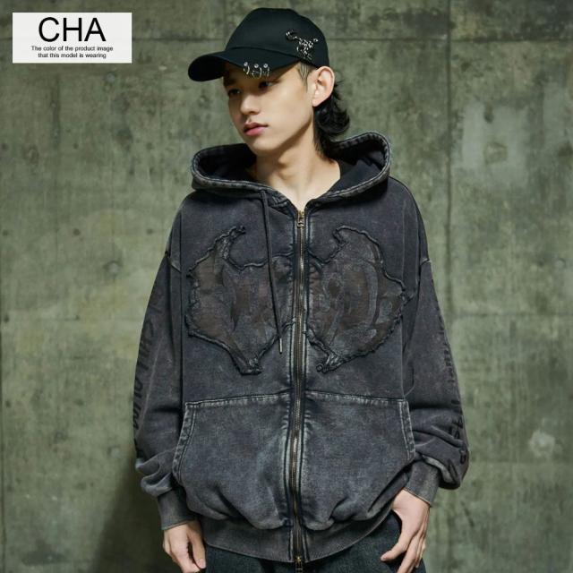 パーカー メンズ ブランド おしゃれ アウター ジップアップパーカー ジップパーカー グランジ ケミカル カットオフ ヴィンテージ ビンテージ 大きいサイズ ゆったり M L CavariA ブランド 大人 20代 30代 40代 ユニセックス 男性 男 服 冬 春 ファッション [CAWI25-02]
