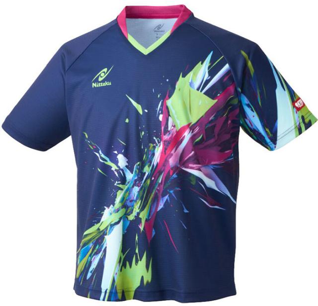 JTTA公認 ニッタク メンズ レディース ジュニア ブライトバーストシャツ 卓球ウェア トップス 半袖 吸汗速乾 ストレッチ ブラック 黒 ネイビー 送料無料 Nittaku NW-2218