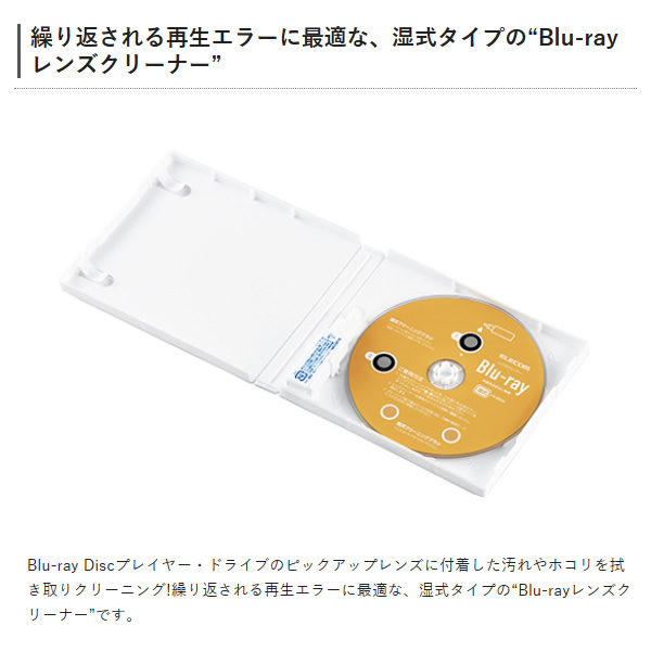 繰り返される再生エラーに最適な、湿式タイプの“Blu-rayレンズクリーナー”です。