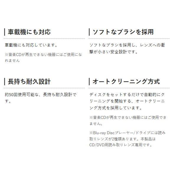 ※Blu-ray Discプレーヤー/ドライブには読み取りレンズが2種類あります。本製品はCD/DVD用読み取りレンズ専用です。