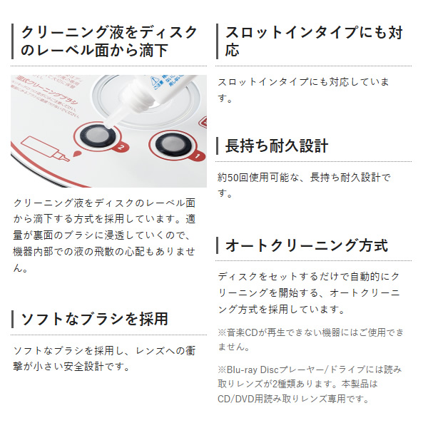 ※Blu-ray Discプレーヤー/ドライブには読み取りレンズが2種類あります。本製品はCD/DVD用読み取りレンズ専用です。