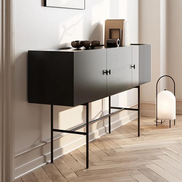 現代建築に着想を得たローサイドボード「アレイ サイドボード」は、現代建築に多く見られる木製スレート外装からインスピレーションを得たデザイン。