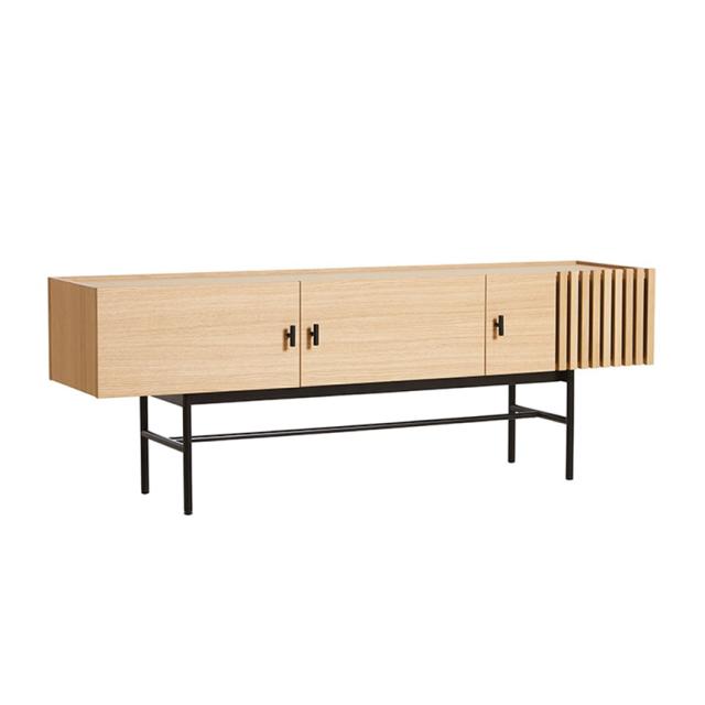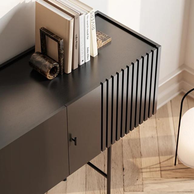 「アレイ サイドボード」は、現代建築に多く見られる木製スレート外装からインスピレーションを得たデザイン。