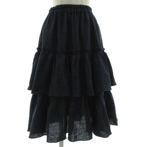 【中古】Michael michael kors スカート ティアード フレア ミモレ丈 ウエストゴム 日本製 リネン100% ネイビー 紺 4