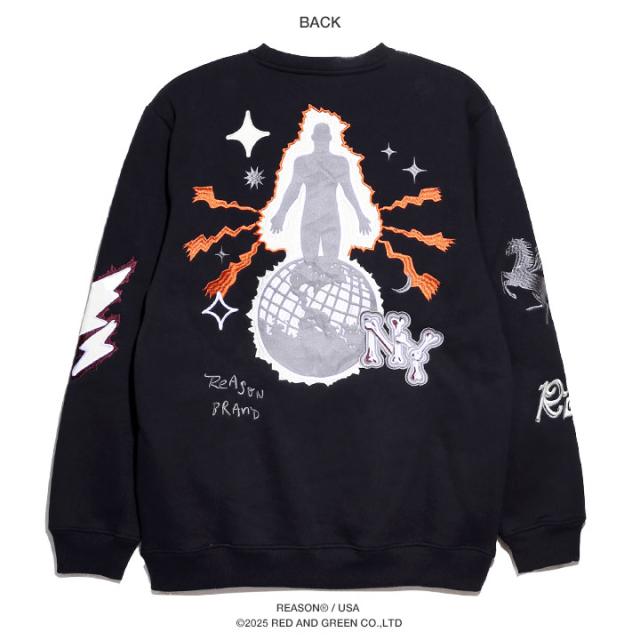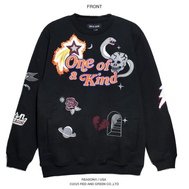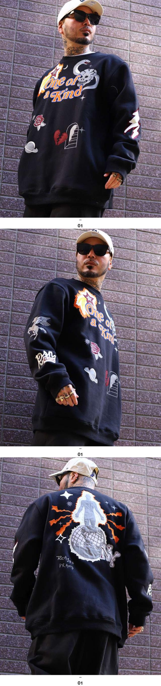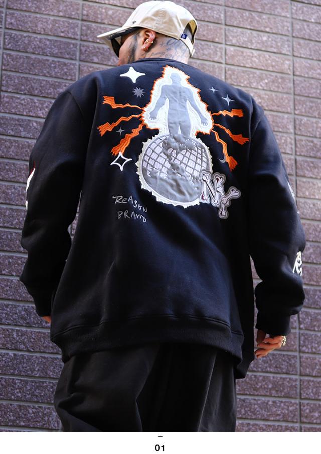 ラスト1点【40%OFF】 REASON トレーナー ブランド スケボー 長袖 スウェット 裏起毛 メンズ レディース 黒 大きいサイズ リーズン トップス 総柄 刺繍 スカル 骨 ハート 世界地図 ビッグシルエット b系 ヒップホップ ファッション ストリート系 服 2025春 FJ2439H