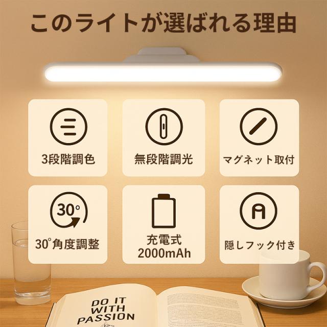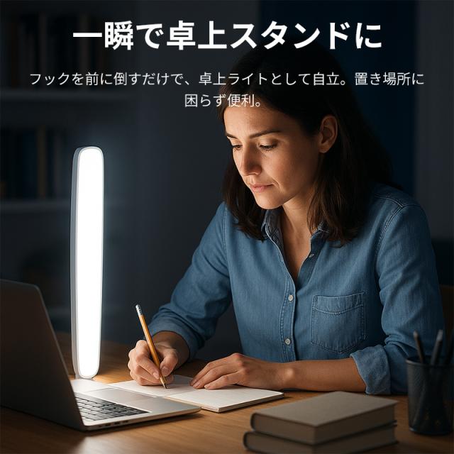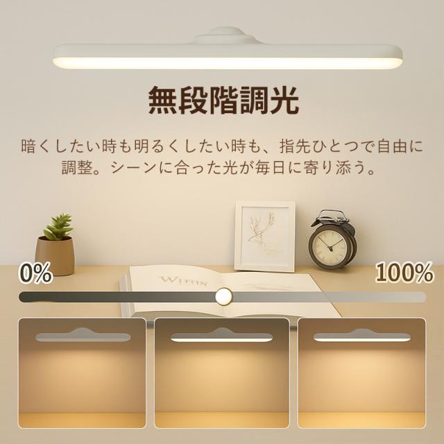 白色光は勉強や仕事に最適、暖色光はリラックスタイムに優しく寄り添い、中間色は読書や日常を自然に照らします。気分や用途に合わせて自由に切り替え可能です。