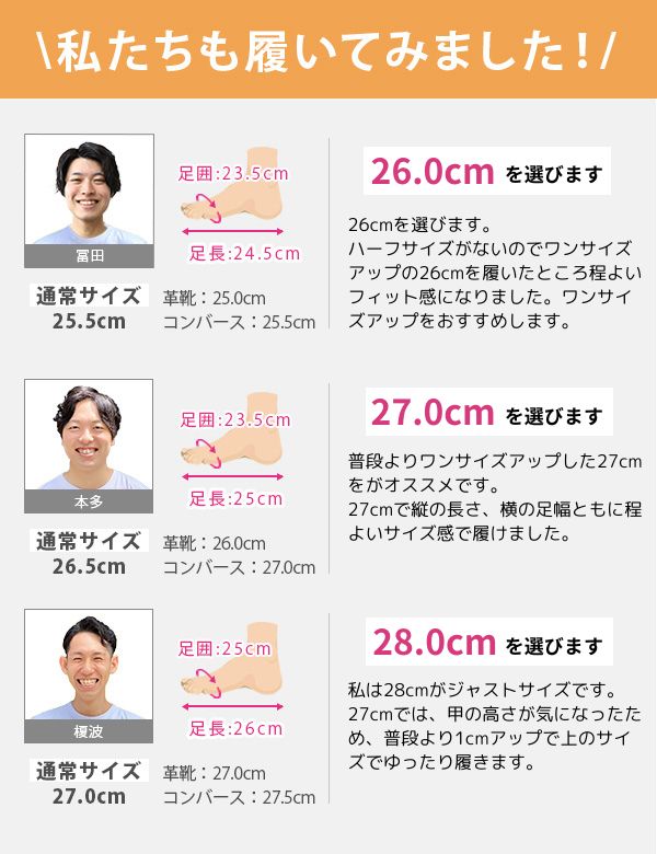 取り扱いサイズ:23cm 24cm 25cm 26cm 27cm 28cm