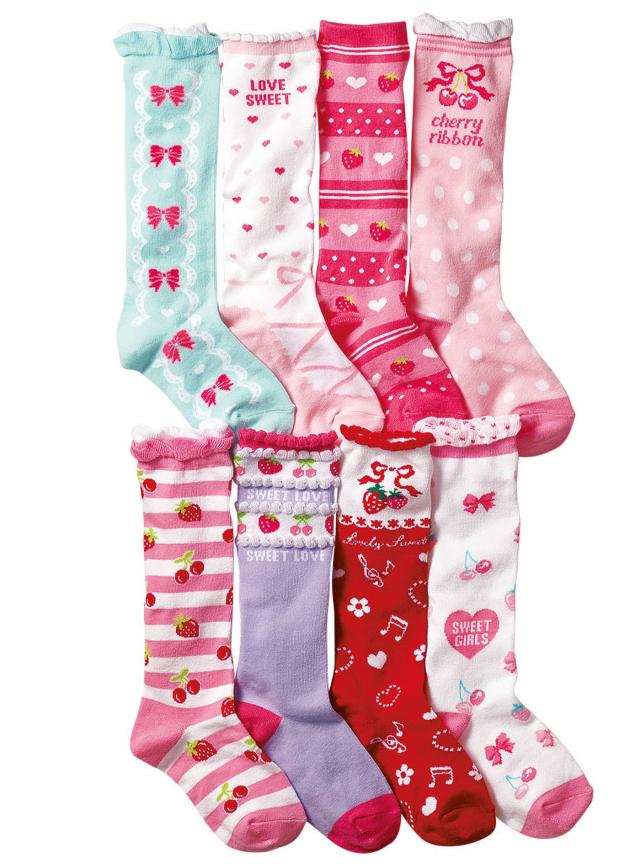 コナミヤ 女の子 靴下 ガーリイな姫系ハイソックス 8足セット のびのびソックス 子供 キッズ ガールズ B 15-19cm