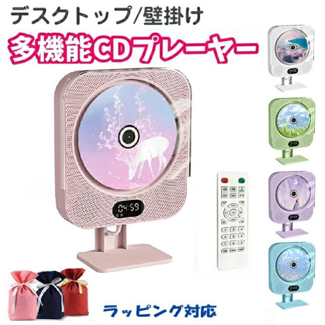 CDプレーヤー デスクトップ 壁掛け CD プレーヤー コンパクト ポータブル 有線 Bluetooth スピーカー付き かわいい 子供用 CD 音楽プレーヤー リモコン付き ホーム CD プレーヤー スタンド付き 音楽再生/語学学習/胎児教育 ピンク