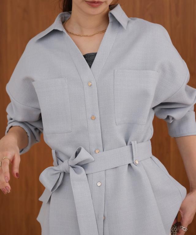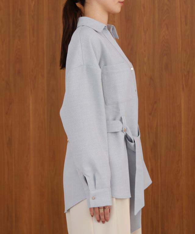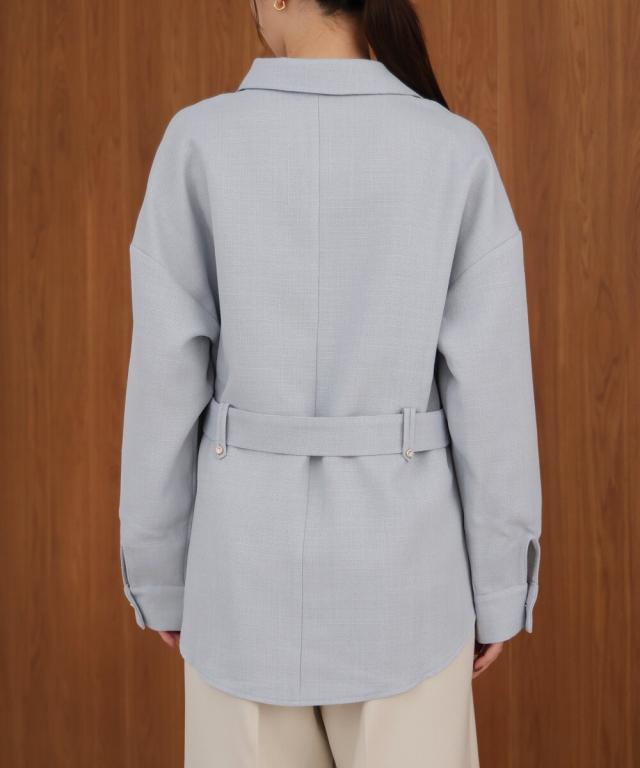 【セットアップ対応】ツイードベルト付きシャツジャケット