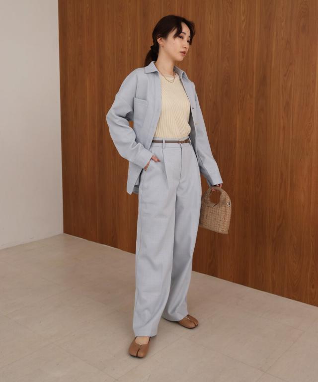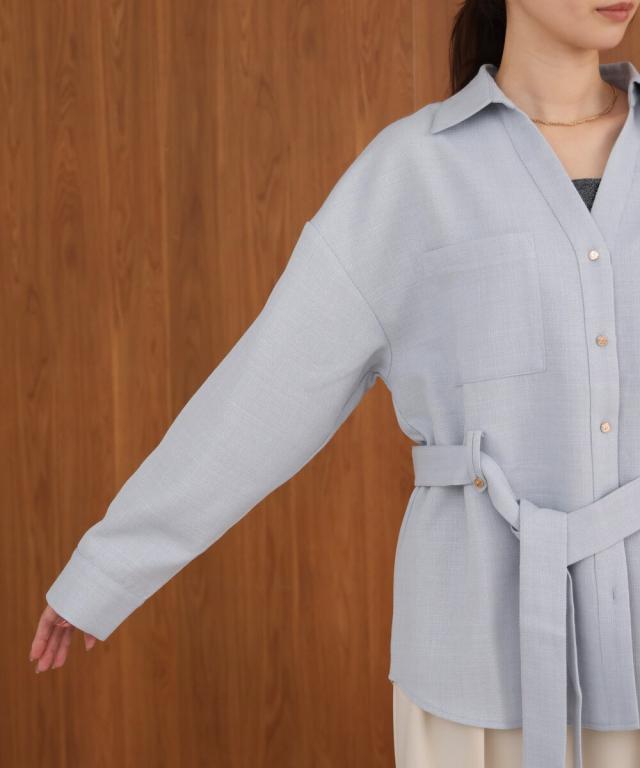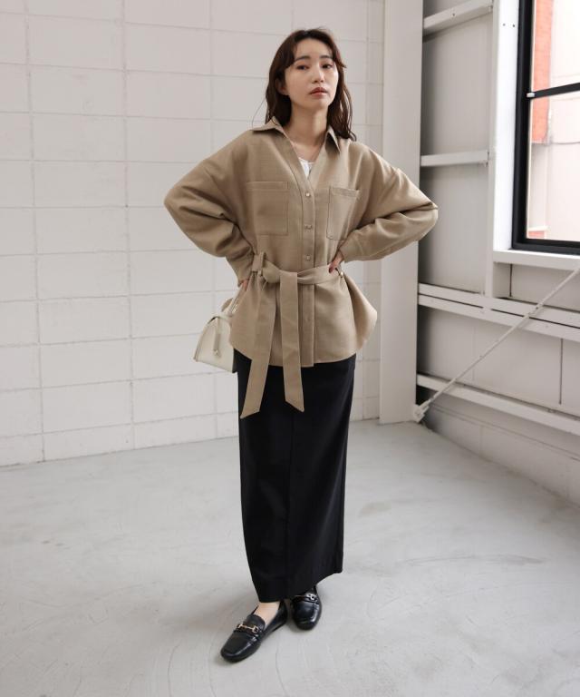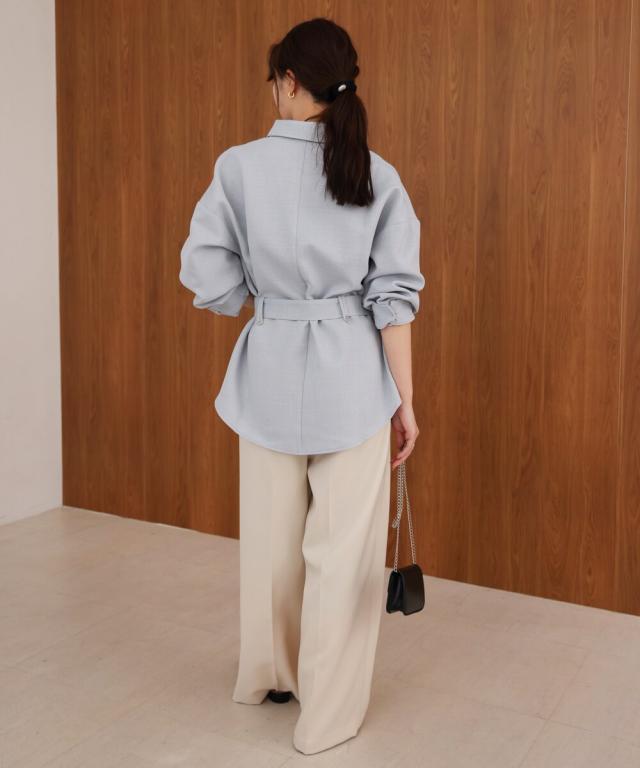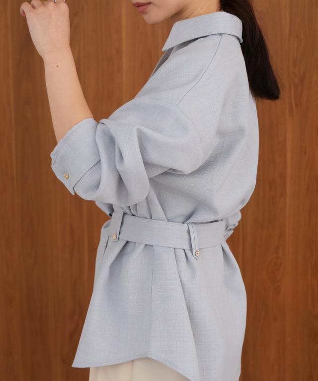 ヒップ周りをカバーしてくれる長めの丈感と、女性らしいフレアシルエットの好バランスなベルテッドジャケット。シワになりにくく軽量な素材であるため、着用時に快適です。シャツ型なので前をあけて羽織ったり、袖をロールアップしたり軽く着ることができ、寒い時期はタートルを着たりと万能アイテムです。顔周りをスッキリ見せる効果があるスキッパーシャツは、合わせるインナーの着こなしでスタイリングを変化させながら長く着られるのもおすすめです!