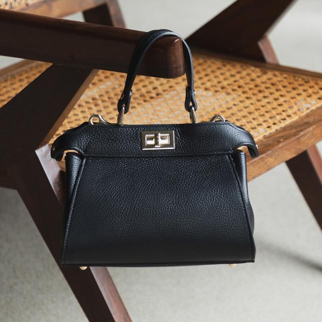 ・かちっとしたフォルムとゴールドの金具で上品に大人っぽさのあるバッグ。