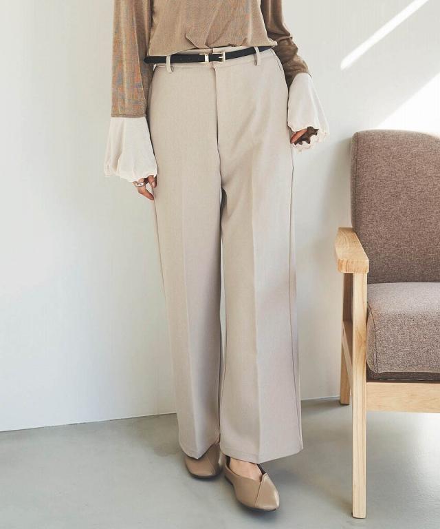 脚長効果を叶えるセンタープレスがポイントのストレートパンツはジャケットとセットアップでも着用可能♪