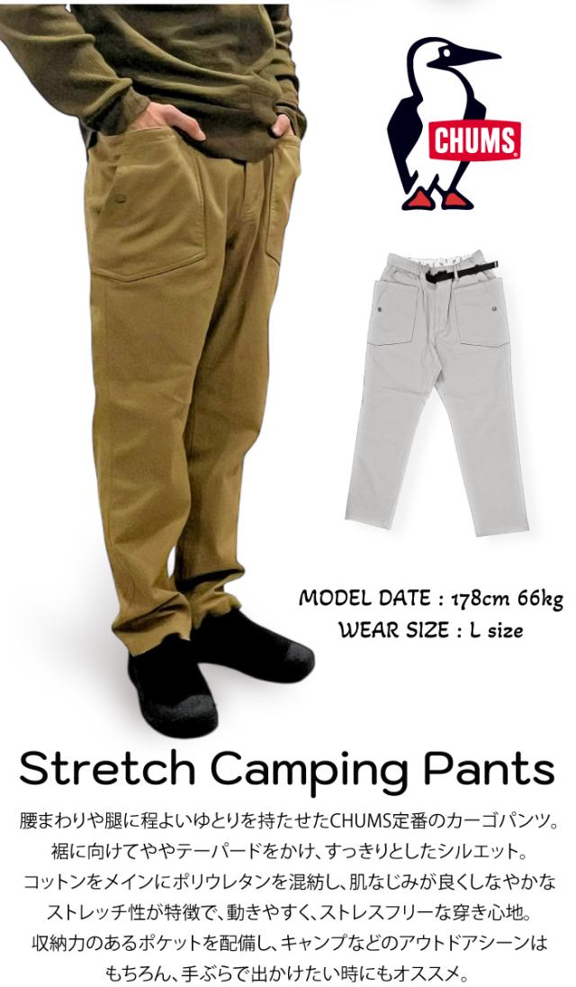 CHUMS チャムス ストレッチキャンピングパンツ メンズ カーゴパンツ ロングパンツ テーパード アウトドア キャンプ BBQ DIY ワークウェア ガーデニング フェス CH03-1369【裾上げ不可】