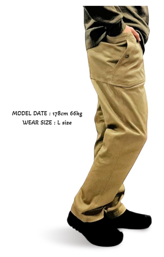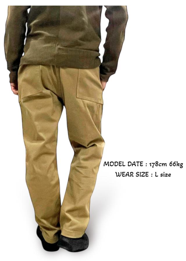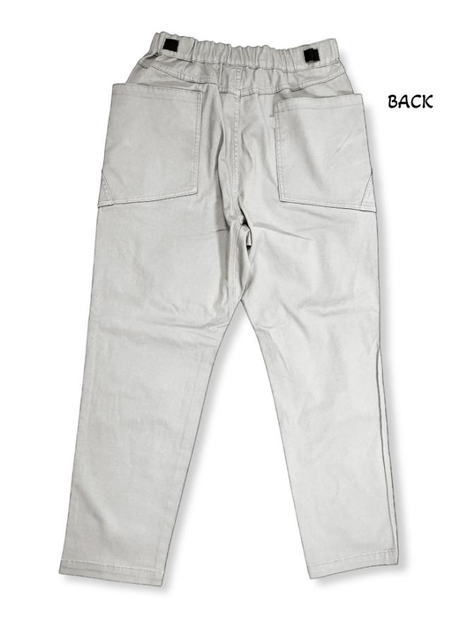 程よいゆとりをもたせつつ、裾に向けてテーパードがかかっており、スッキリと着用できるシルエットです。
