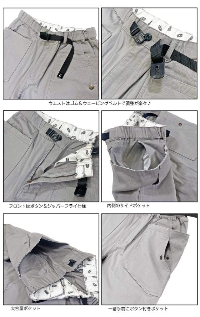 ウエストはゴム&ウェービングベルトで調整もラクラク。