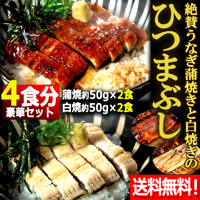 うなぎ蒲焼約50g×2食&うなぎ白焼約50g×2食