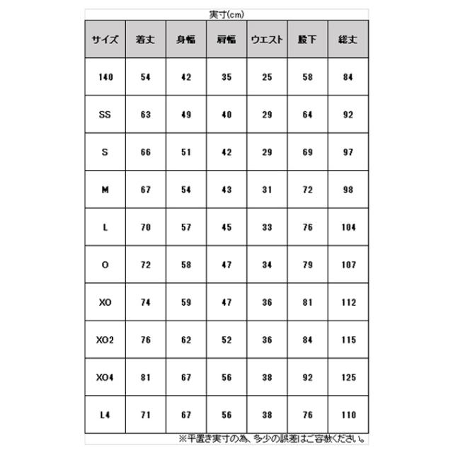 サイズ:身長 / 胸囲 / 胴囲