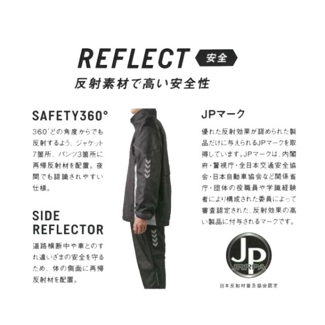 安全(7ヶ所の反射材)+暖か(保温中綿+トリコット起毛)のウインドブレーカー上下セット。