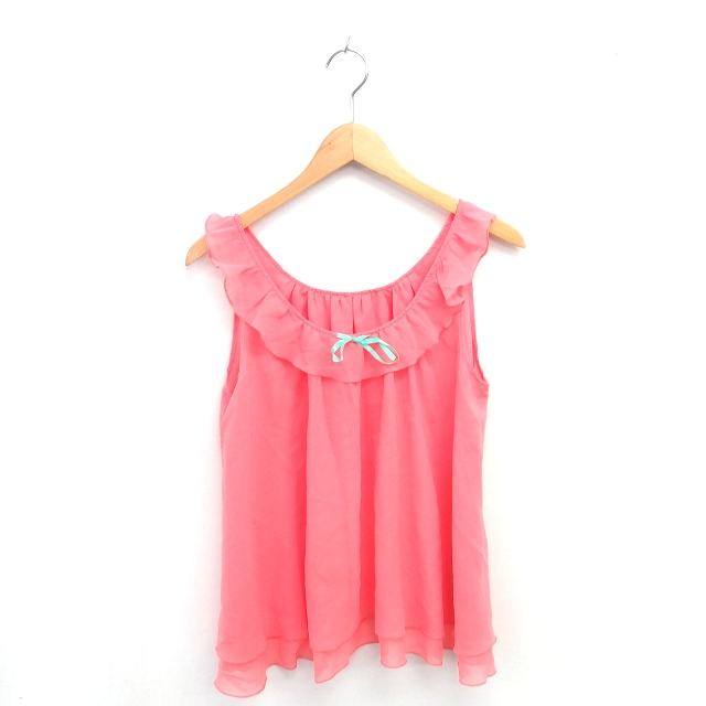 【中古】ロデオクラウンズ Rodeo Crowns タンクトップ キャミブラウス リボン フリル 薄手 FREE ピンク /TT