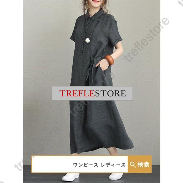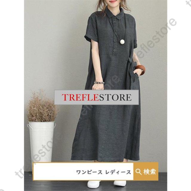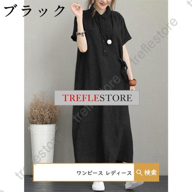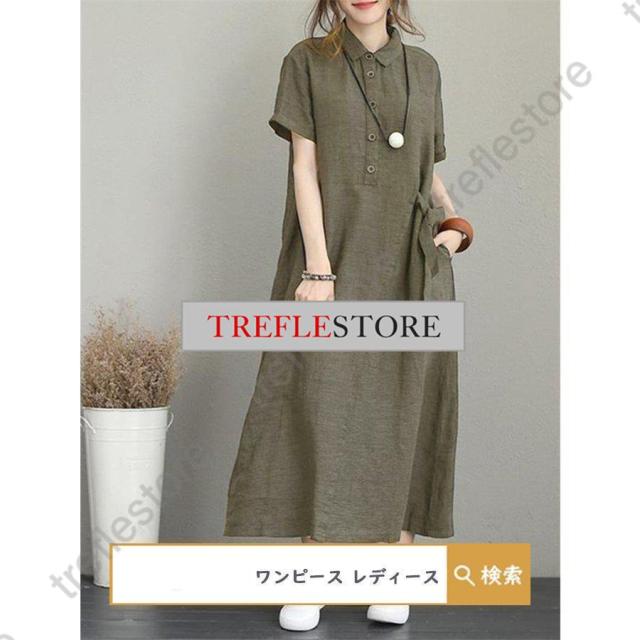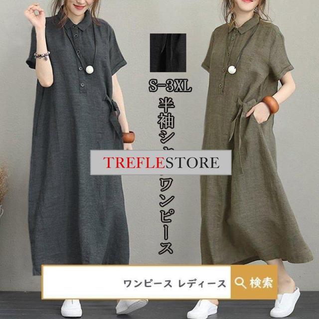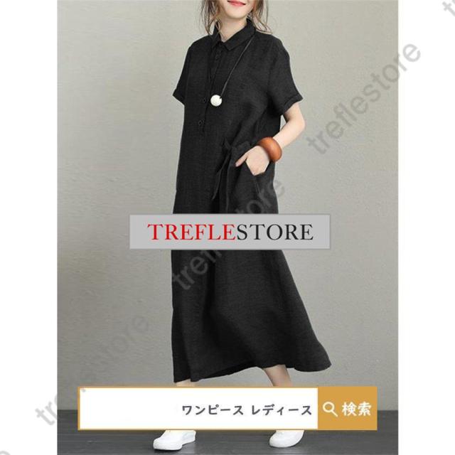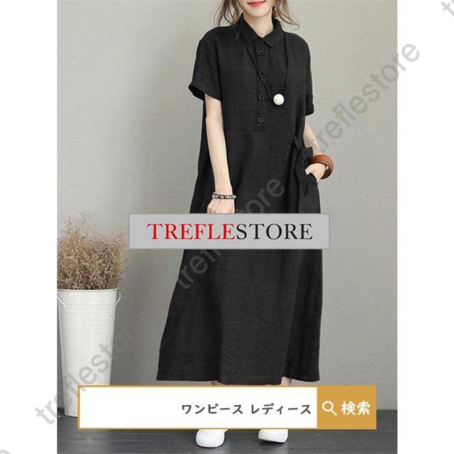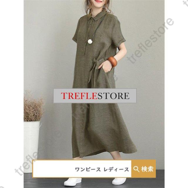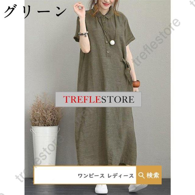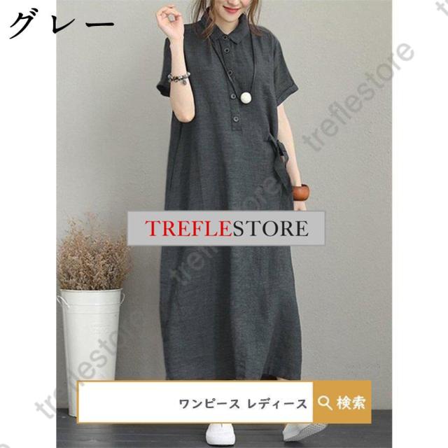 【ポイント5倍!】ワンピース ロングワンピース レディース シャツワンピース 40代 チュニック 30代 マキシ 夏 綿 ロング 半袖 体型カバー 無地 薄手 大きいサイズ 50代