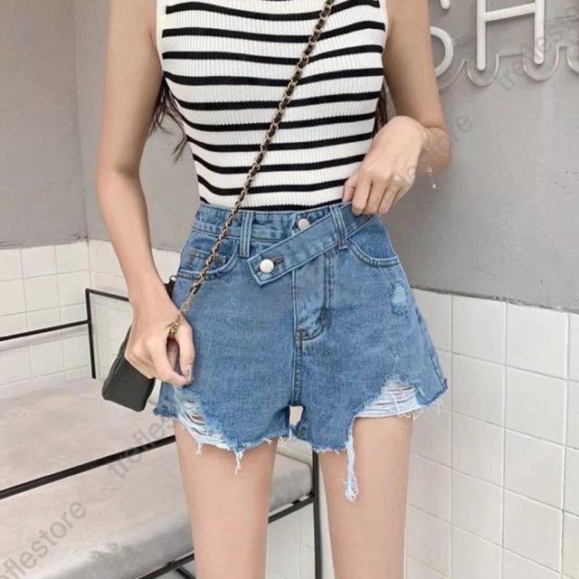 ダメージジーンズ ハイウエスト ホットパンツ カットオフ ボトムス 無地 ワイドパンツ ヴィンテージ デニム 短パン