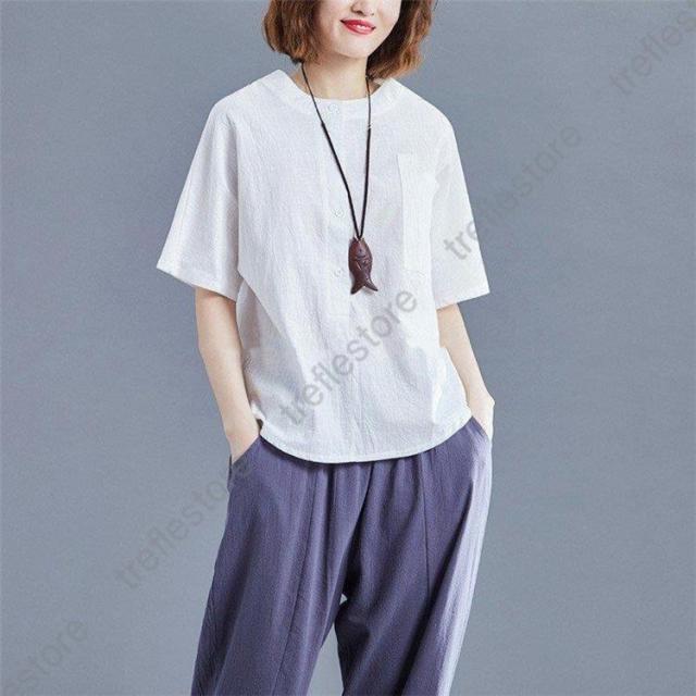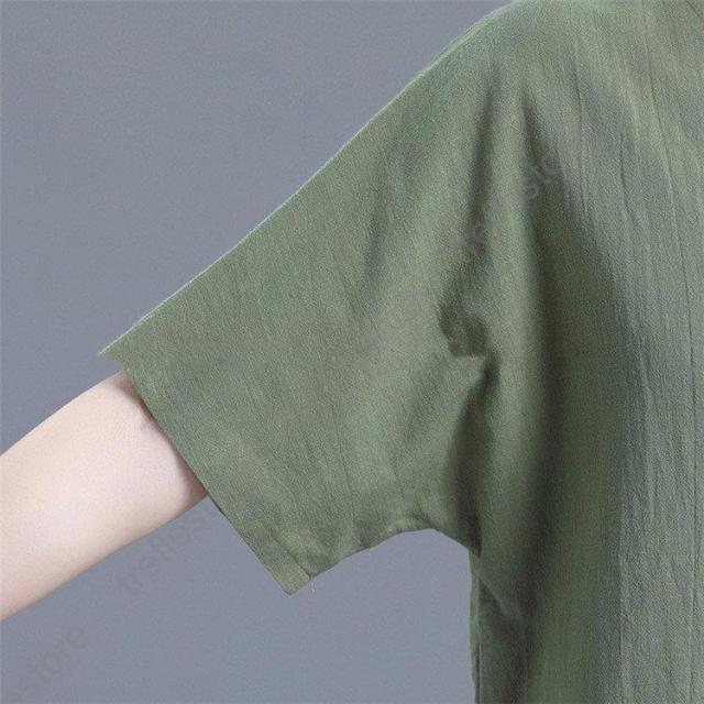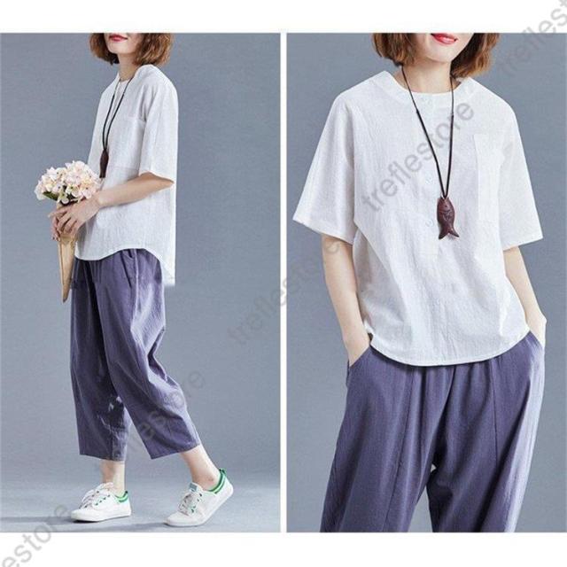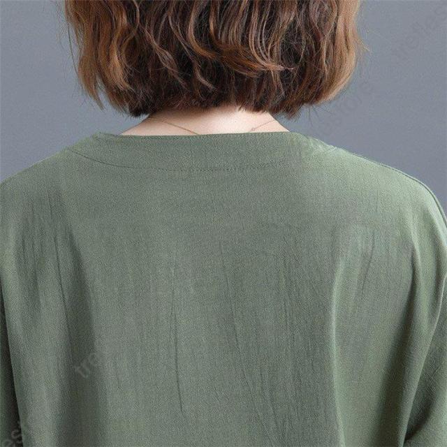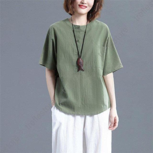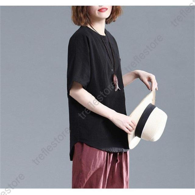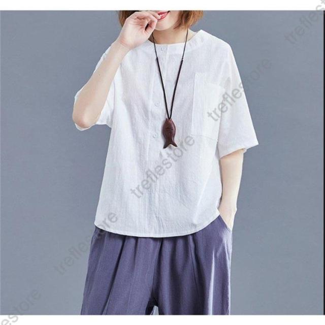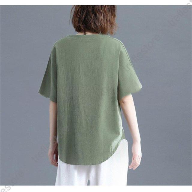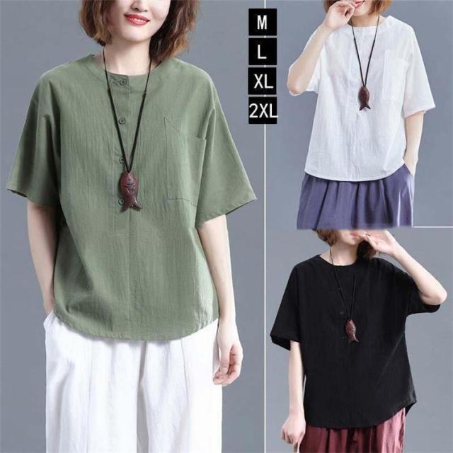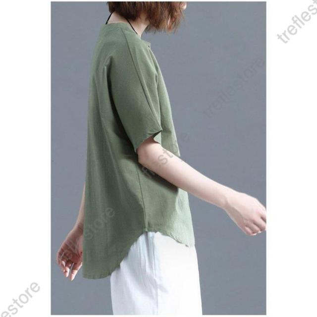 レディース トップス シャツ 夏 チュニック 無地 リネン ショート丈 体型カバー 薄手 ゆったり プルオーバー お洒落 カジュアル 30代 きれいめ