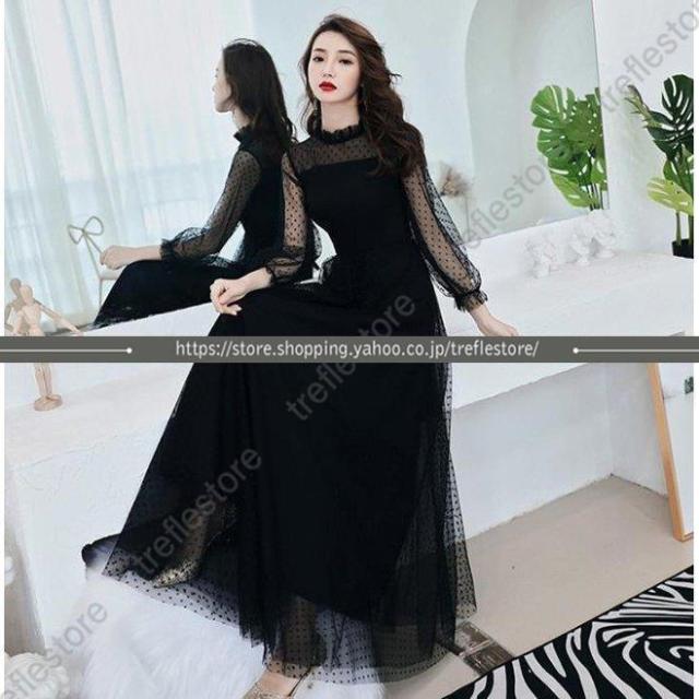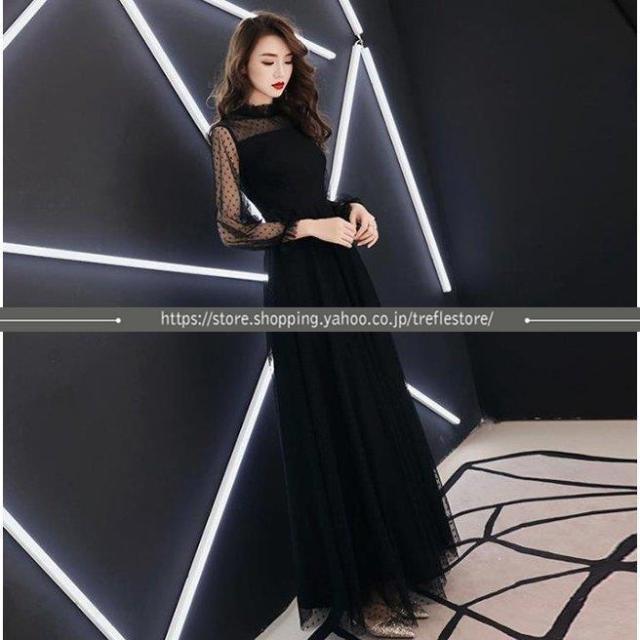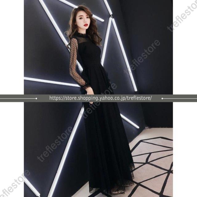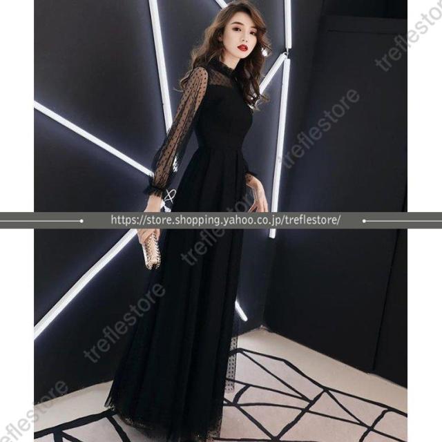 【ポイント5倍!】黒ロングドレス ハイネック お呼ばれ ドレス パーティードレス 着痩せ 成人式 演奏会 卒業式 20代 30代 結婚式 ワンピース 二次会 同窓会 セール