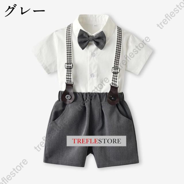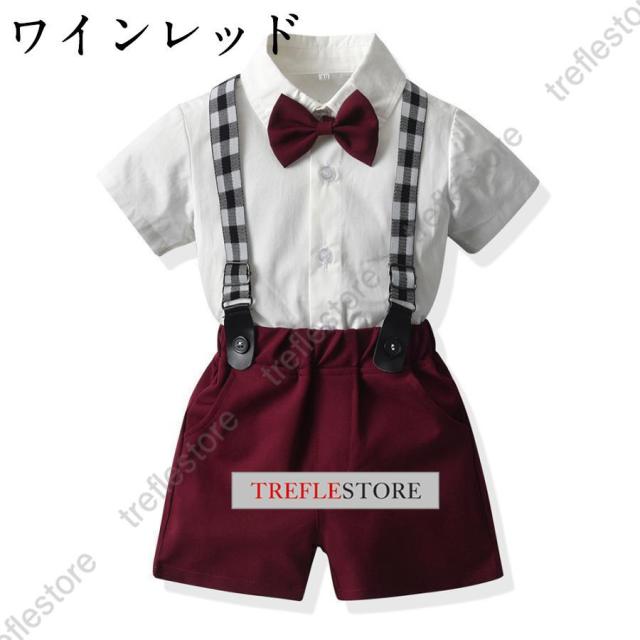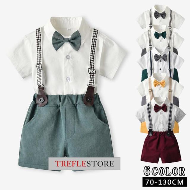 子供服 ベビー服 男の子 フォーマル スーツ 半袖 ボーイズ 子供スーツ キッズ サスペンダー 紳士服 結婚式 七五三 初節句 発表会 70 80 0 100 110 120 130